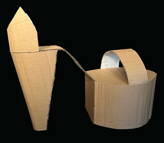 This oversized heel was made with corrugated cardboard which can be used as a prop inside a window to fill the space or used as a riser to place mannequins or merchandise.